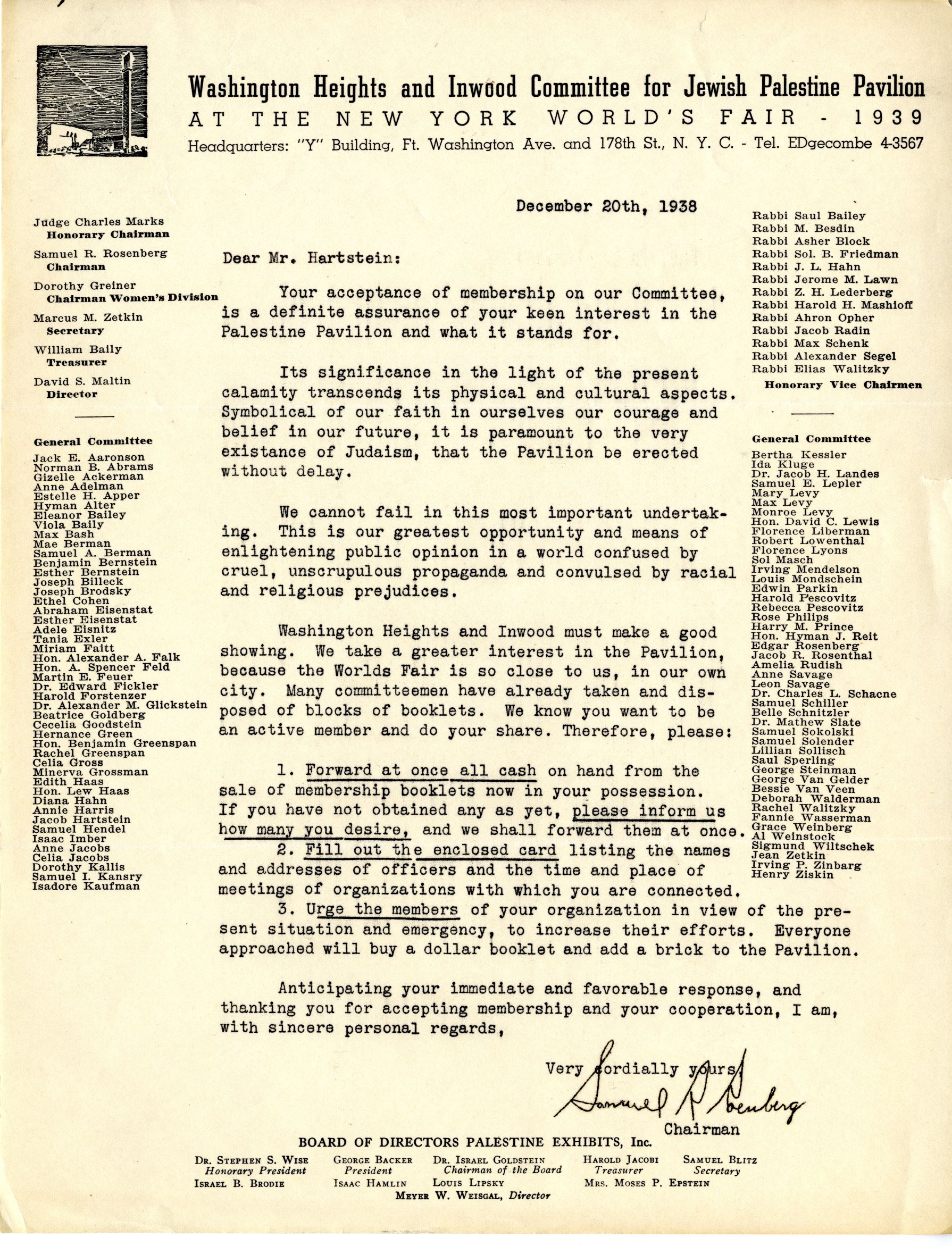 The Committee on Jewish Religious Exhibits at the New York World's Fair 1939 of the Synagogue Council of America, flyer, p. 2. The exhibit never came to fruition.